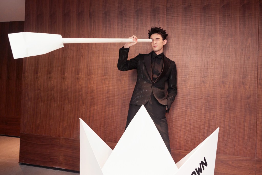 Caption: While waiting on the red carpet, Wu Lei was busy doing this…